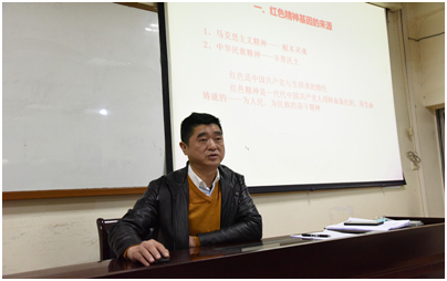 11月22日,我校第二党支部书记黄明以《红色精神——中国共产党人的基因传承》为题,为支部全体党员上了一堂精彩的主题教育专题党课。