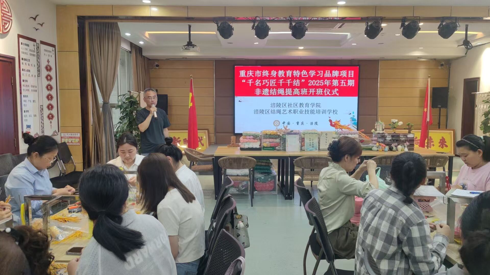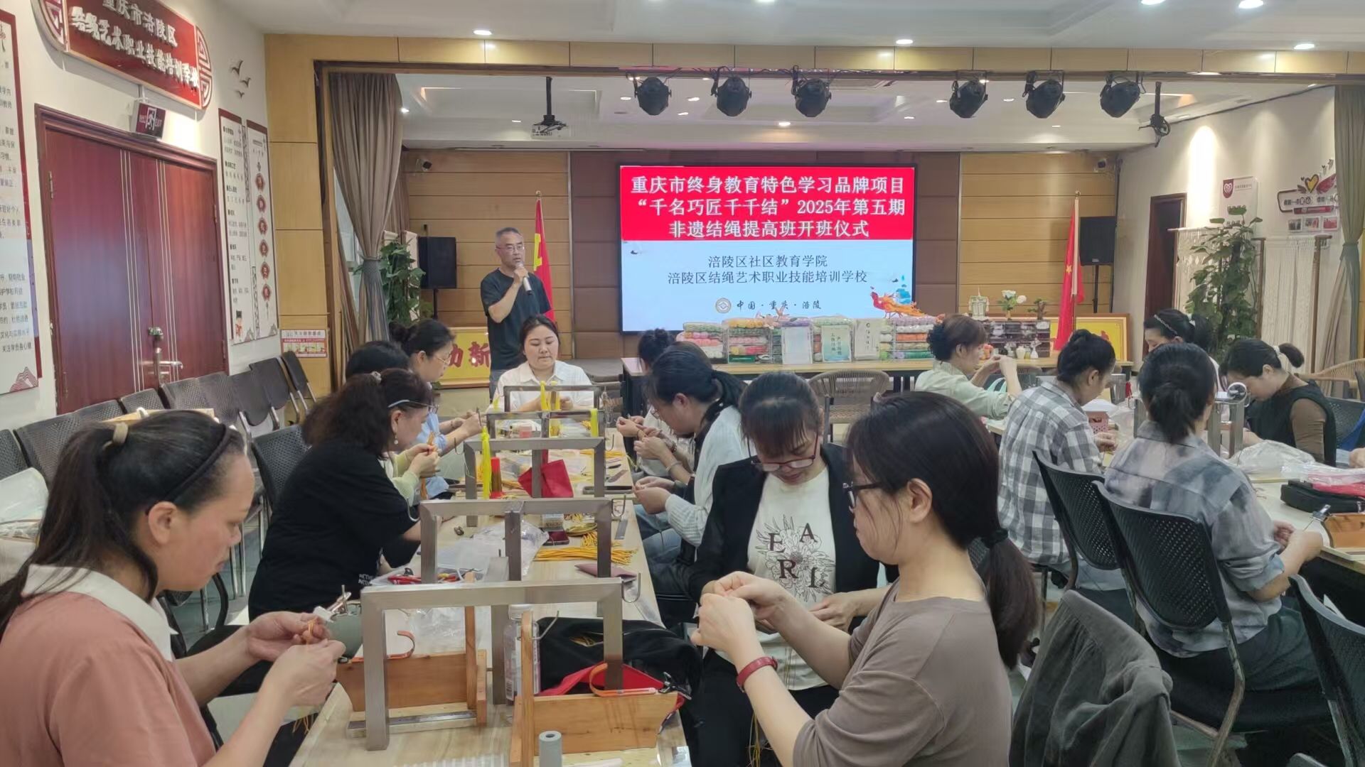 重庆市终身教育学习品牌項目“千人巧匠千千结”第五期提高班今天上午开班,学员积极、师生热情高涨,该项目正有序开展着!