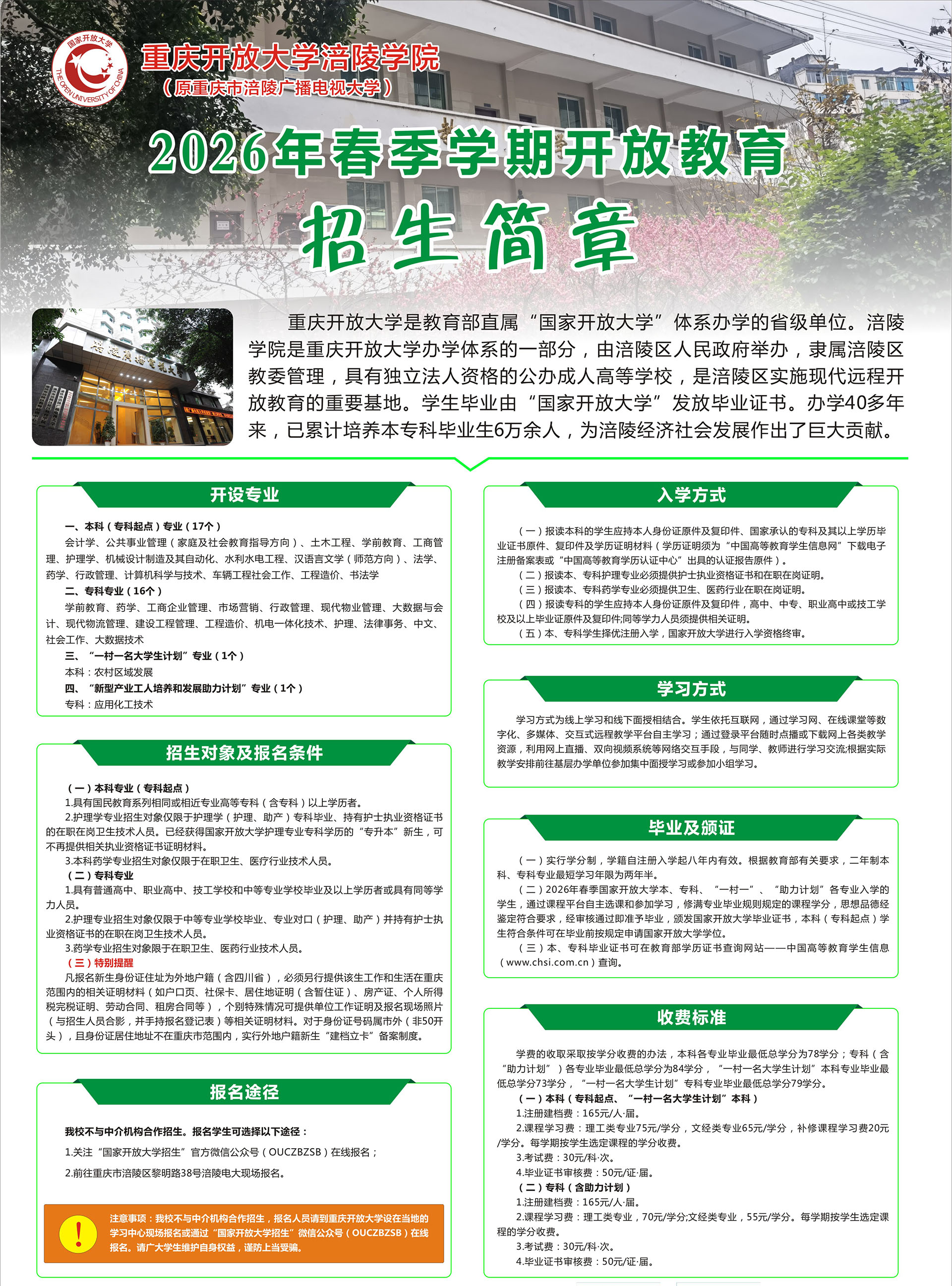 重庆市涪陵广播电视大学2026年春季学期招生简章