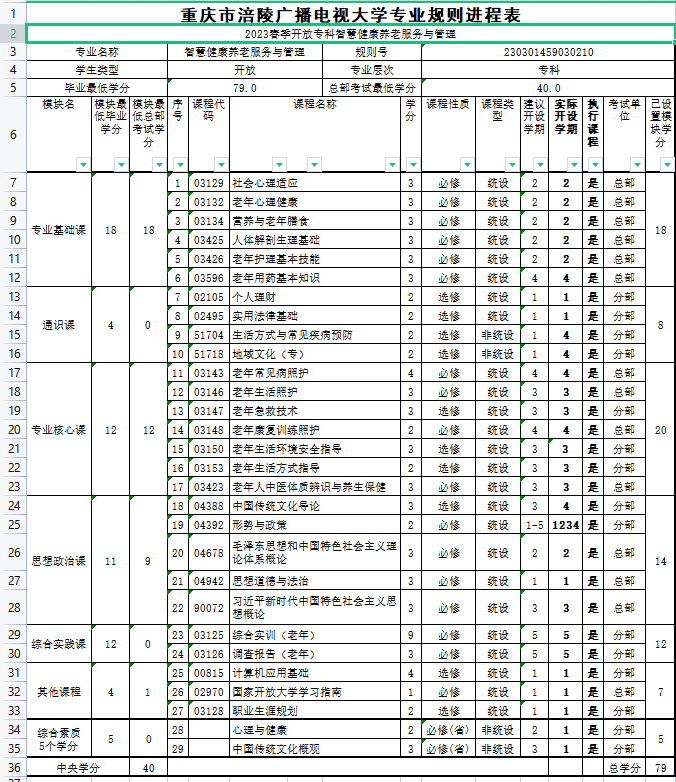 涪陵电大2023年春教学执行计划 开放专科智慧健康养老服务与管理