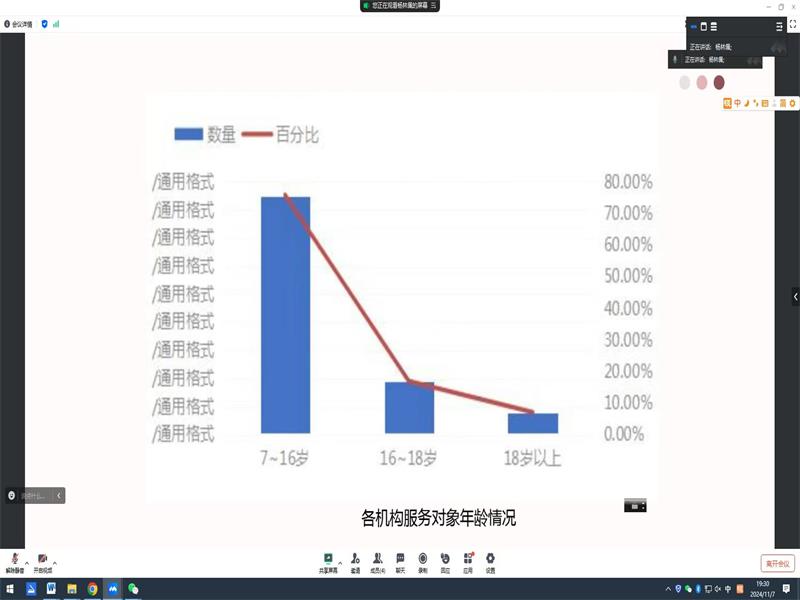 2024年11月7日我校王晓东、雷昊宇和杨林佩三位老师仍然坚守在教学辅导一线的讲台上,利用腾讯会议的方式给学生进行《办公室管理》、《建筑构造》和《儿童家族教育指导》课程的网上直播辅导。