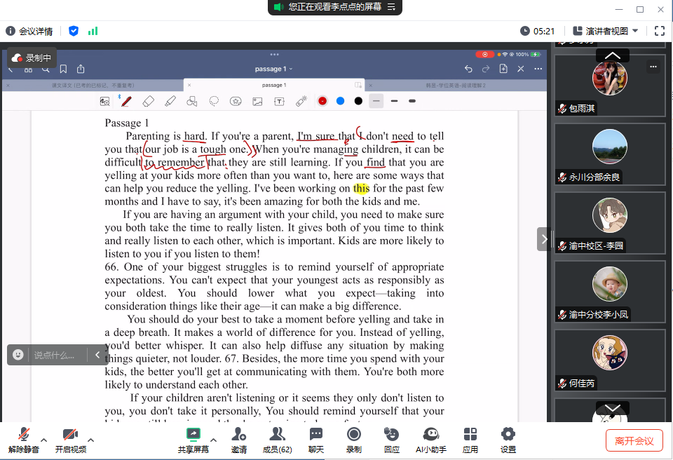 2025年3月25日晚上七点半,韩昱老师正在给重庆开大的师生上学位英语直播课