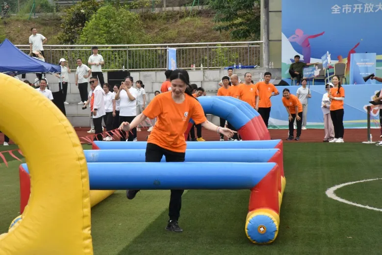 比赛当日,涪陵学院代表队身着统一橙色运动服,以昂扬姿态亮相赛场。在“协同奋进”“乾坤聚力”“同舟共济”等项目中,师生默契配合、灵活应变,既有速度与力量的比拼,也有策略与智慧的碰撞。赛场上,呐喊助威声此起彼伏,我校师生凭借策略与速度,一路过关斩将,在激烈竞争中脱颖而出,最终荣获三等奖。这一成绩不仅是对参赛队员辛勤付出的肯定,更彰显了学院团结奋进、积极向上的精神风貌。