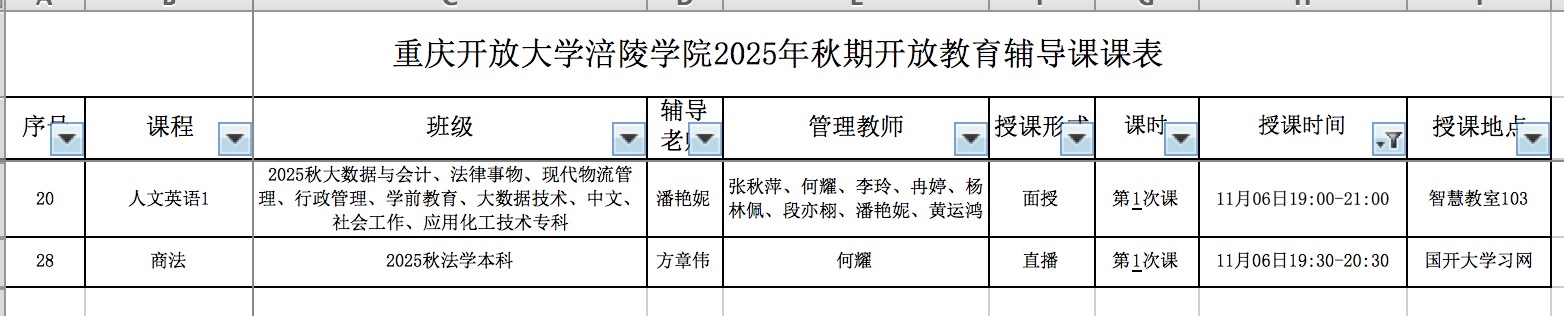 11月6日我校开设的课程如下,请相关同学按时参与面授学习或线上学习。
