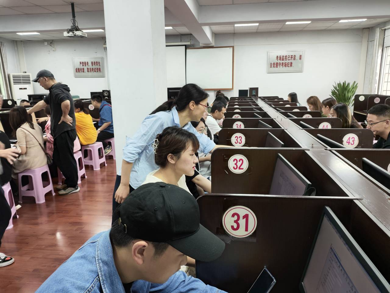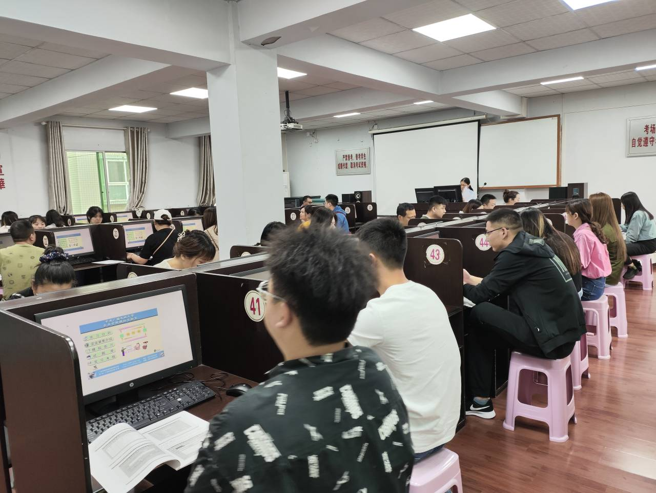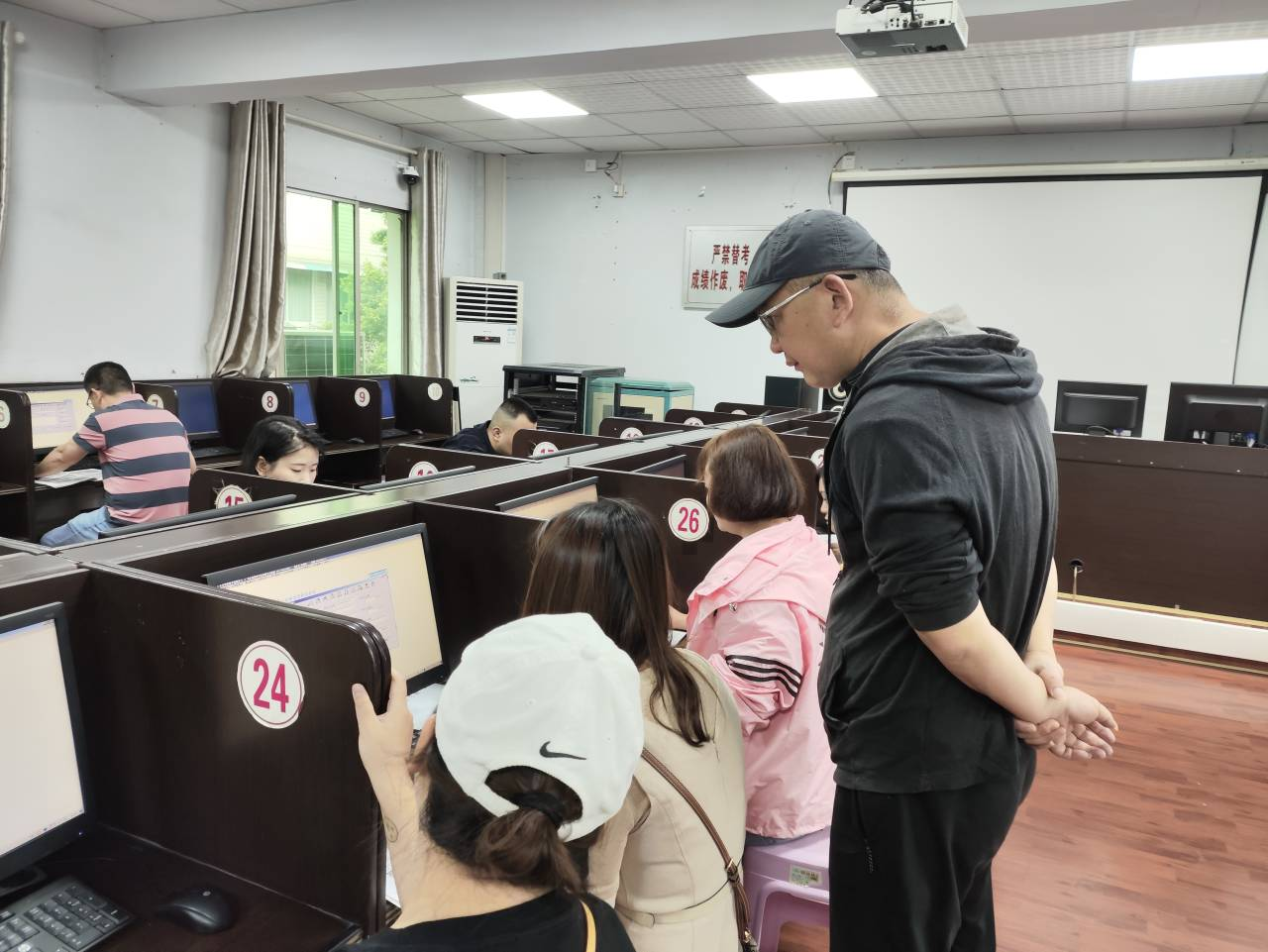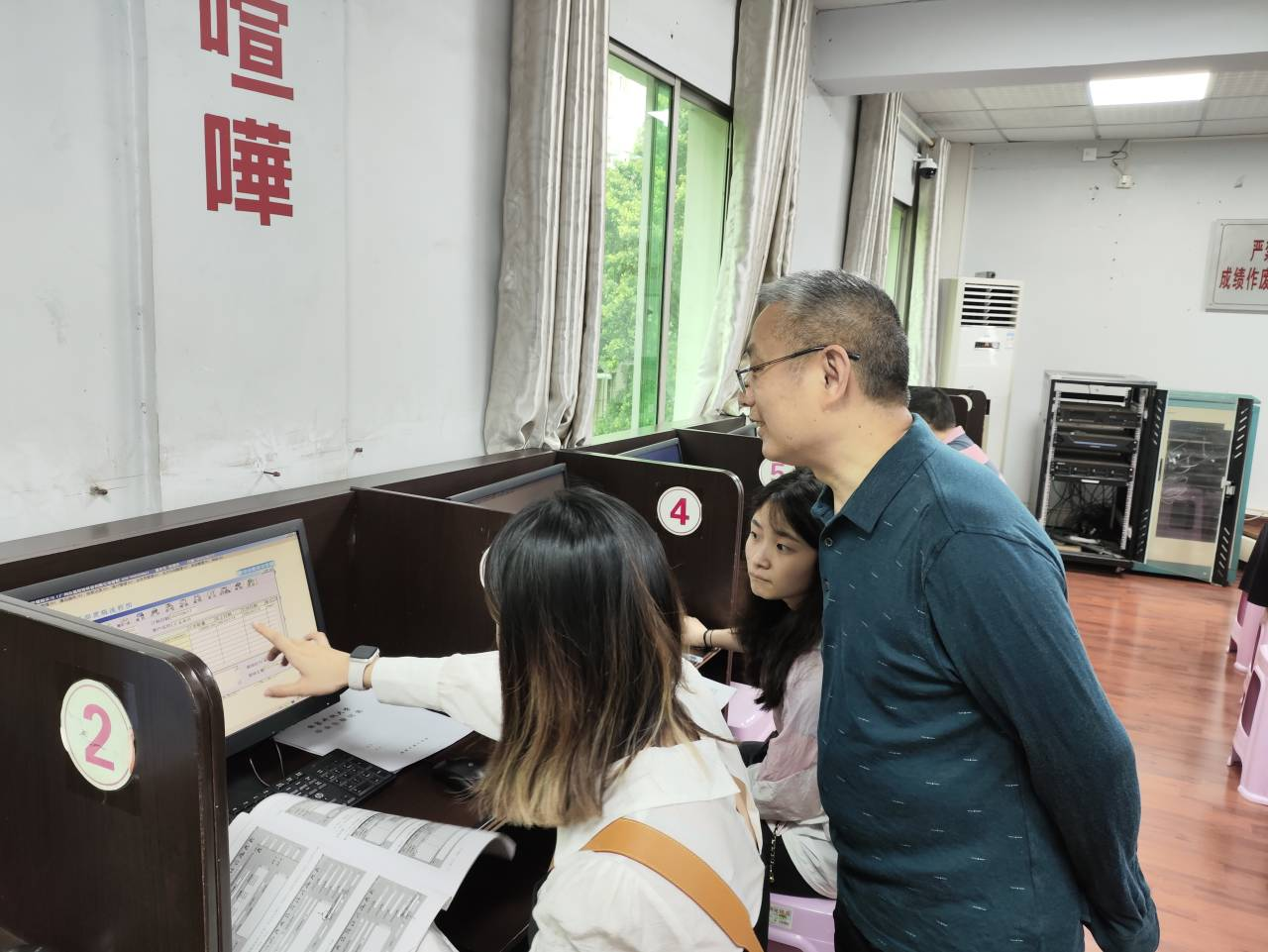秦处,赵老师,石老师,段老师在7楼机房辅导21春工商管理学生进行工商企业管理模拟实验。