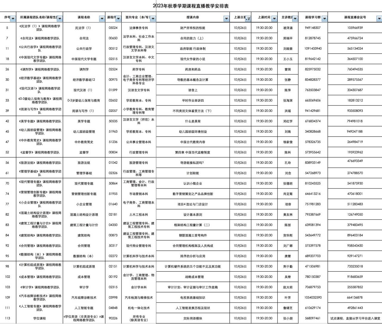 今日重开直播课程如下图所示,请涉及到的班主任通知学生按时上课。