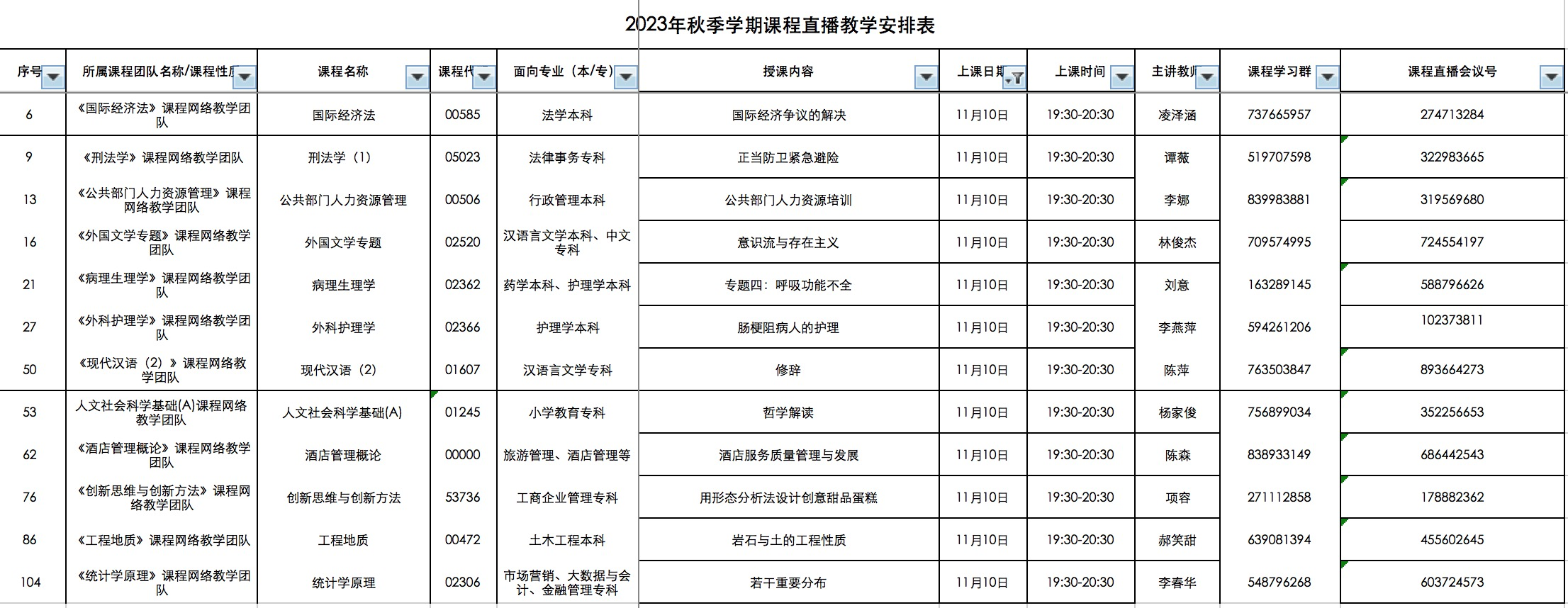 今日重开直播课程如下图所示,请涉及到的班主任通知学生按时上课