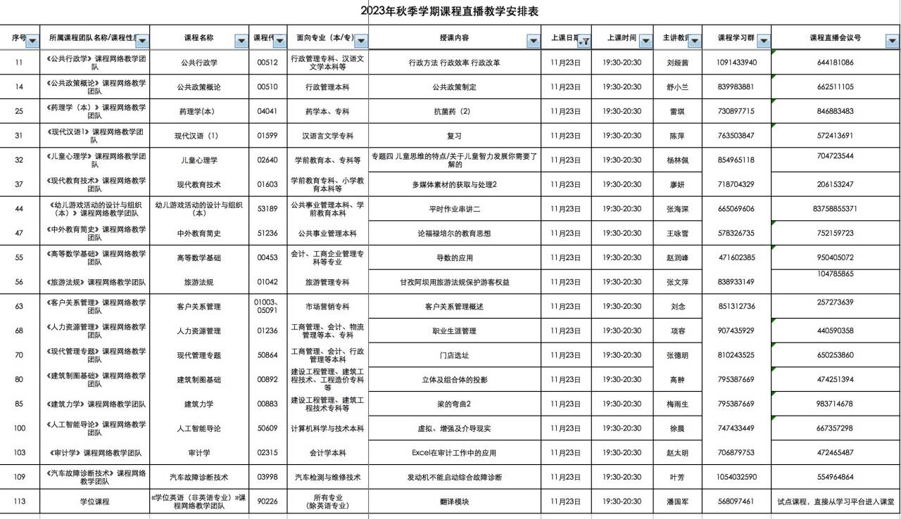 今日重开直播课程如下图所示,请涉及到的班主任通知学生按时上课。
