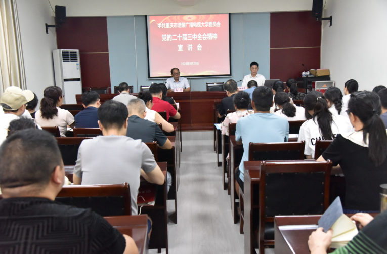 9月20日上午,涪陵区委宣讲团成员、区社科联党组书记、主席陆永华到我校作党的二十届三中全会精神专题宣讲。