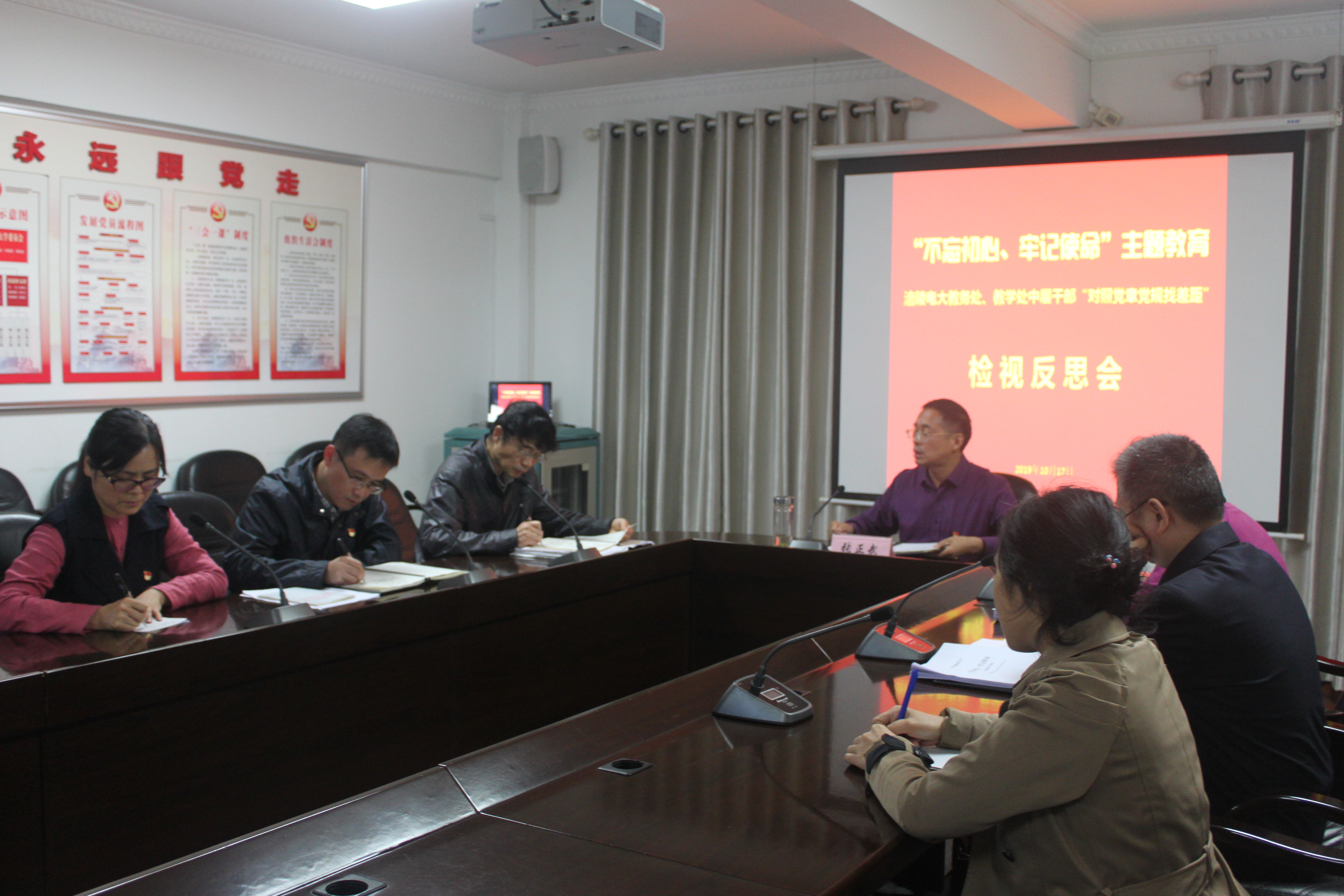 10月17日下午5点30分,涪陵电大第一党支部在四楼会议室召开教务、教学党小组对照党章党规找差距检视反思会。继续“不忘初心、牢记使命”主题教育推向深入。
