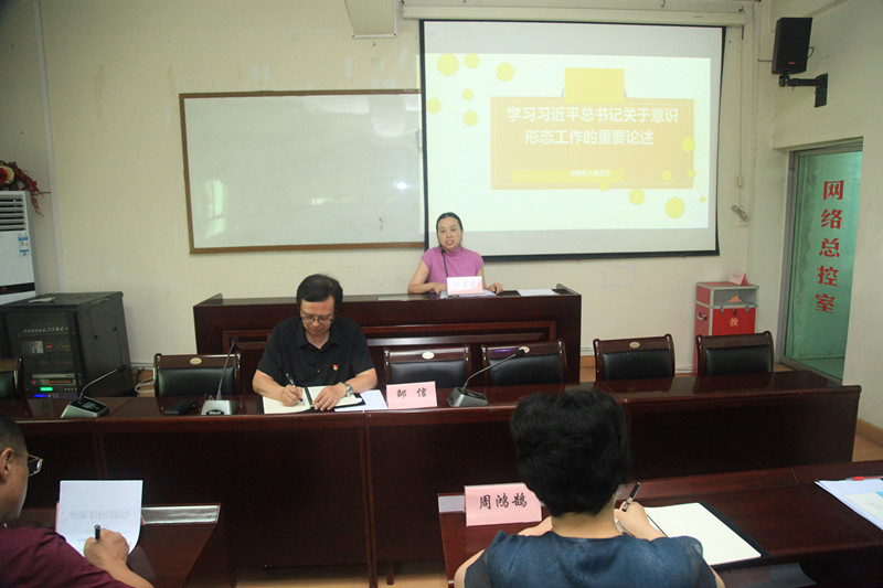 6月20日,我校按照年度党课计划安排,举行了第六期党员领导干部讲党课。党课题目是《学习习近平总书记关于意识形态工作的重要论述》。学校党委委员、校长邹信同志主持会议,党委委员、副校长向莹莹同志主讲,全体在职党员共28人参加学习。