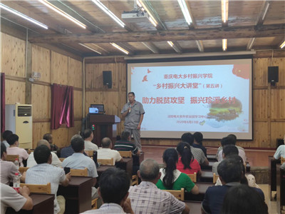 在珍溪镇泰升生态农业园的观摩学习中,学员们参观了泰山观光园的蔬菜基地,规模庞大,蔬果品种繁多,包括柑橘、茄子、玉米、草莓、葡萄、丝瓜、南瓜、西瓜、百香果……随后,学员们还参观了非物质文化遗产长廊,长廊以浮雕图的形式主要介绍了榨菜的起源及整地、播种、移栽、加工等涪陵榨菜生产工艺流程。参观结束后,全体学员来到农业园学习中心会议室参加了“乡村振兴大讲堂”(第五讲)——‘助力脱贫攻坚,振兴珍溪乡村’”报告会。会上,泰升农业园技术总监姚德平用质朴的语言为学员分享了生态循环农业与优质高产关键技术,提出“一乡一品,一村一品,一社一品,一家一品,一人一品”的管理特色,依托团队合作,创新模式发展,进行规模化养殖种植生产销售。