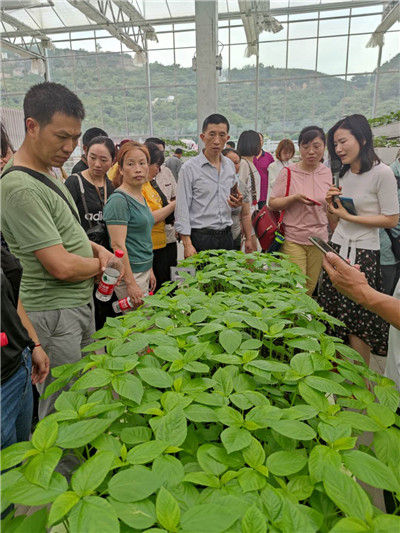 最后一站为国内唯一一家系统开展榨菜研究的研究中心——渝东南农科院,学员们了解了农科院作为技术示范实训基地的发展历程,参观了重庆市涪陵区国家现代农业产业园科技创新园,其内具有富有创意的森林会客厅、LED人工光植物工厂、创客空间、极智会议室等,并现场听取了农业物联网智能控制系统下的各种培育技术讲解,还观看了在此技术下不同品种蔬菜的生长状态。