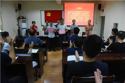 二是重温一遍入党誓词。全体党员在邹信同志的带领下在鲜红的党旗下向党再次宣誓,表达自己对党的忠诚和对共产主义理想信念的坚定。