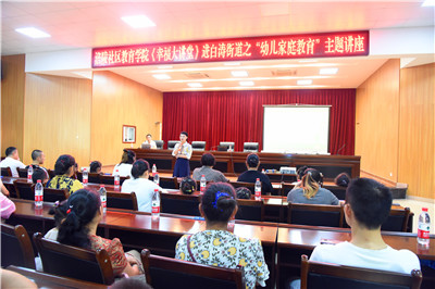8月28日上午9:30,由涪陵社区教育学院主办、幸福大讲堂工作室承办的全民终身学习特色项目“幸福大讲堂”首期在白涛街道社区教育学校成功举行,涪陵社区教育学院服务指导中心主任王岭带队社区教育学院业务指导组老师何婷婷、谭幼龄、高舟前往白涛街道社区教育学校,白涛街道社区80余名家长携幼儿到现场聆听了此次讲座。
