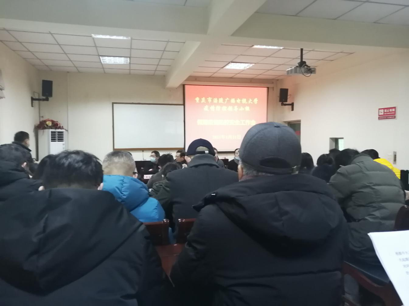 首先,我校疫情防控领导小组办公室付主任介绍了目前我国新冠肺炎疫情防控形势严峻,传达了近期我区区委召开的疫情防控大会精神,并对寒假期间全体教职员工个人就如何进行疫情防控的知识及必须遵守的一些我区的政策与规定作了详细的解读。然后,学校疫情防控领导小组副组长、分管领导向校长对疫情防控相关要求作了三点强调。一是向校长指出寒假期间全体教职员工务必做到原则上不是必须离渝最好不要离开涪陵;二是严禁我校职工到中高风险地区旅游、探亲或者访友;三是如果有特殊情况需要到市外去的职工必须遵守请销假制度。然后,向校长号召大家务必持续绷紧疫情防控这根弦,共同筑牢我校基层防疫防线,巩固学校当前防疫成果。最后,我校党委书记、校长强调大家务必高度重视,将作好个人疫情防控工作作为一项重要政治任务来抓,我校党委将对违反疫情防控规定的职工实行责任追查制。