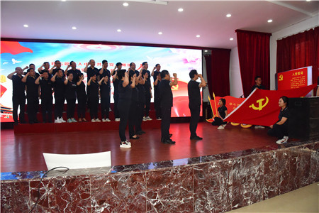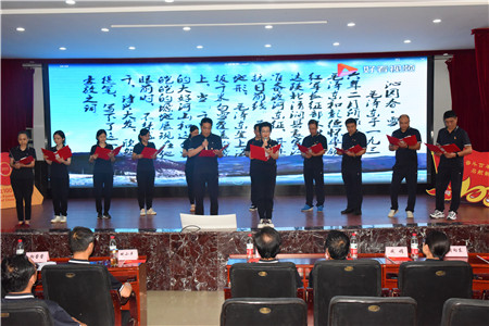 载歌载舞,共祝华诞。大会第四个议程文娱演出,精彩纷呈、气势如虹的诗词朗诵《沁园春.雪》,赤诚满怀的歌曲《不忘初心牢记使命》,热情洋溢的歌舞《大中国》,饱含深情的歌曲《唱支山歌给党听》,真挚炽热的歌曲《我爱你中国》,娓娓道来的诗词朗诵《大中国》,每一个节目都是对党对祖国的深情告白,表达了全体党员干部职工歌颂时代、永远跟党走,奋进新征程的美好期待。