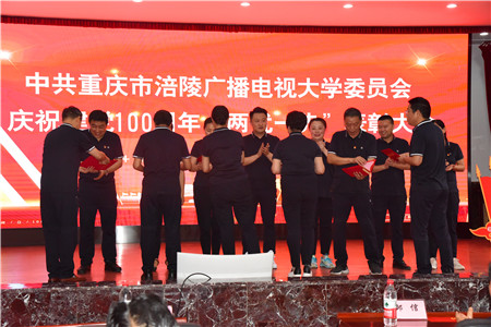 最后在党委书记、校长邹信的指挥下,全体教职工手持红旗,一首慷慨激昂的《没有共产党就没有新中国》响起来,庆祝建党100周年大会圆满结束。