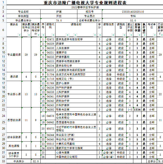 涪陵电大2023年春教学执行计划 开放专科护理