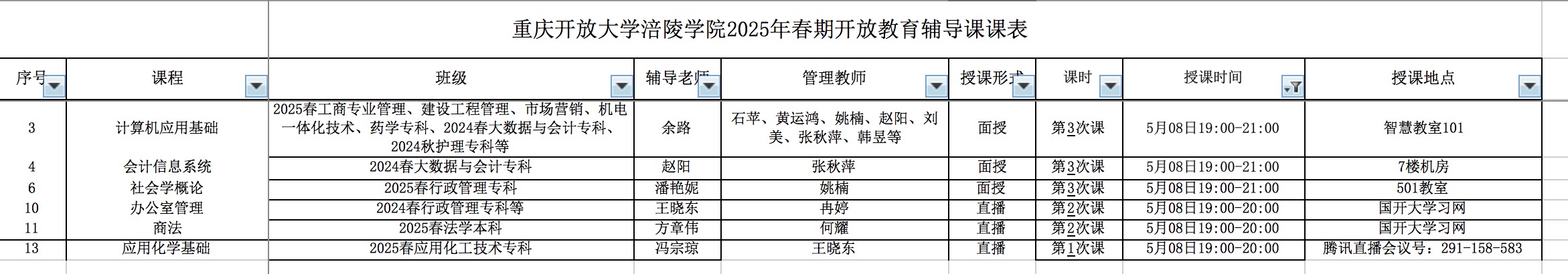 5月8日 重开大、涪陵电大辅导课表