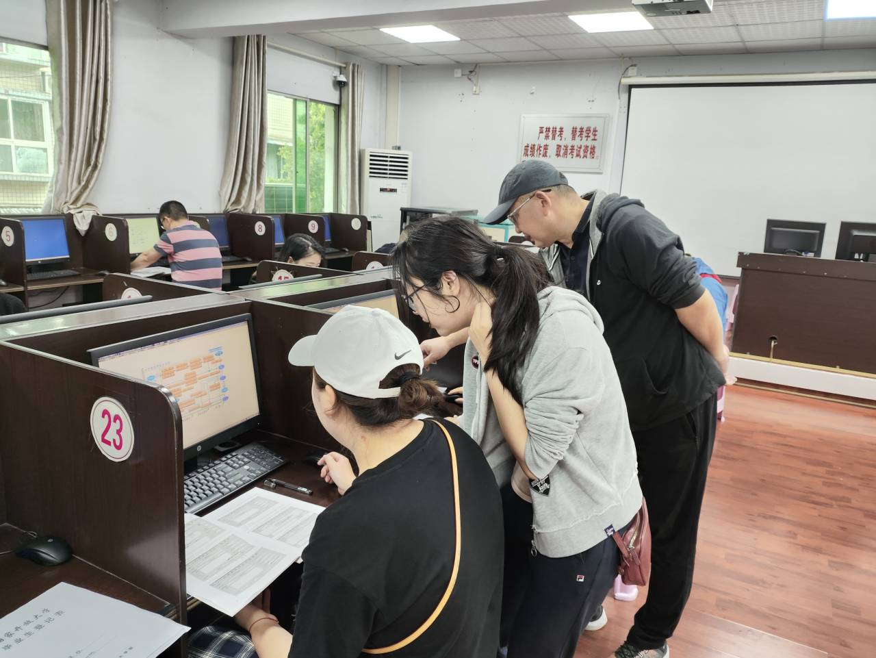秦处,赵老师,石老师,段老师在7楼机房辅导21春工商管理学生进行工商企业管理模拟实验。
