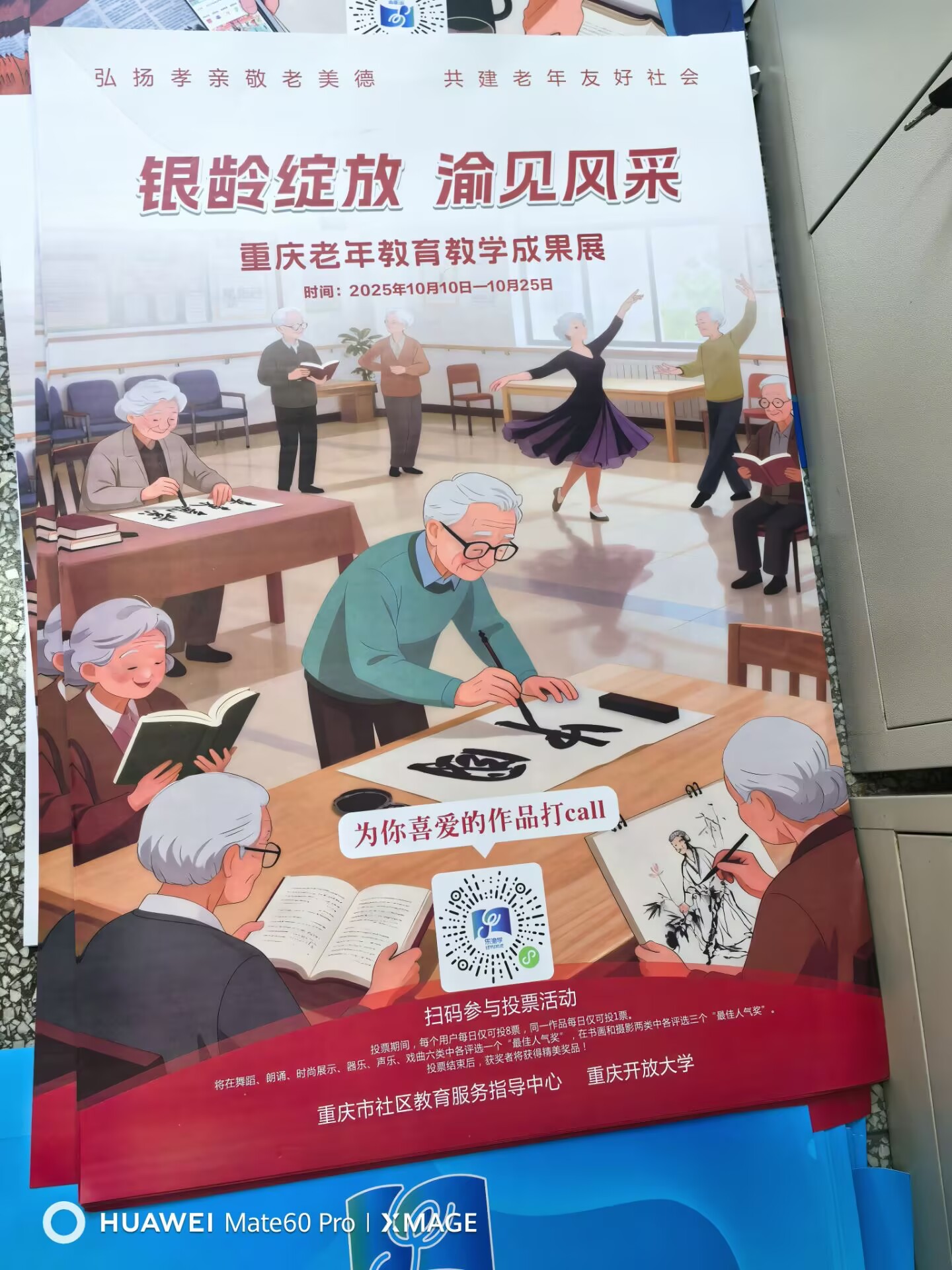 “银龄绽放·渝见风采”重庆老年教育教学成果展“最佳人气奖”投票活动今天开始了哦,截止到10月25日,请大家广泛宣传,投票结束后,获得“最佳人气奖”者将获得精美奖品。