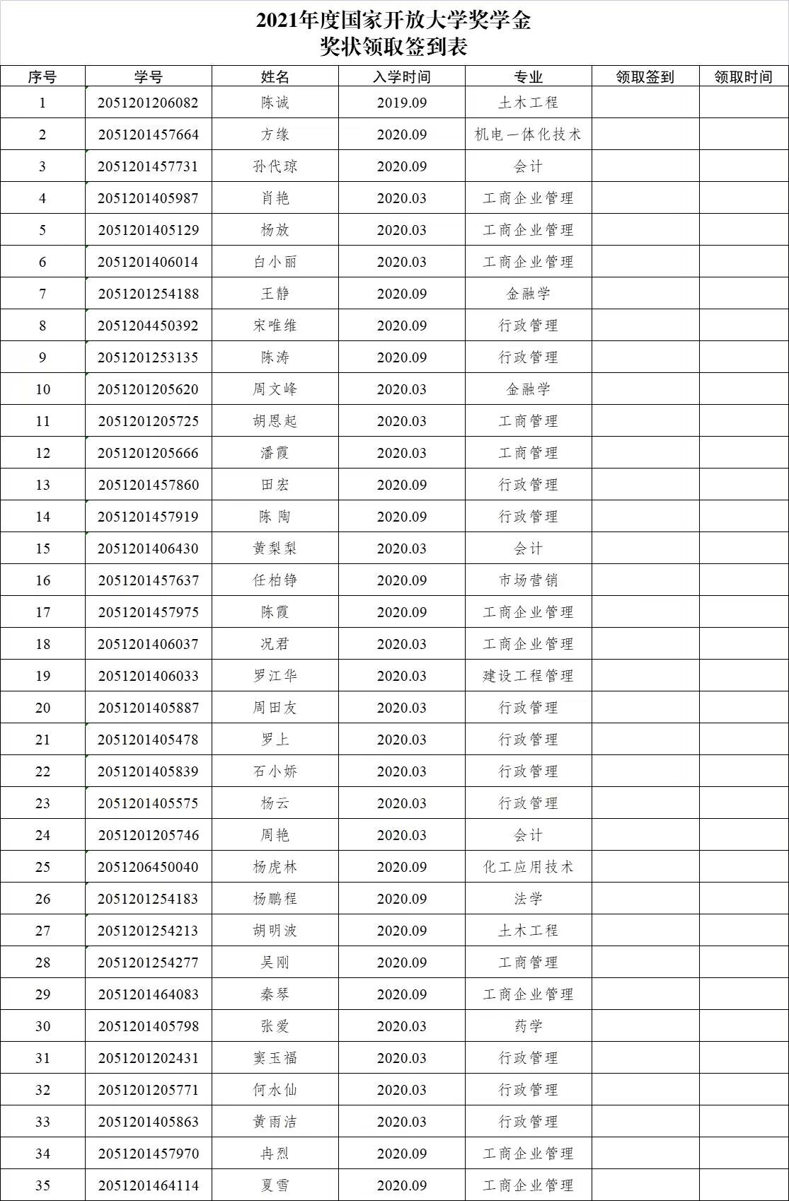 以下是涪陵电大2022秋季学期网学之星、2021年度国开大奖学金以及2022年春季学期重开大网学之星的学生获奖名单,请涉及到以上获奖学生的管理教师到教学处将奖状及奖品领取,将奖状及奖品发到获奖学生手中!