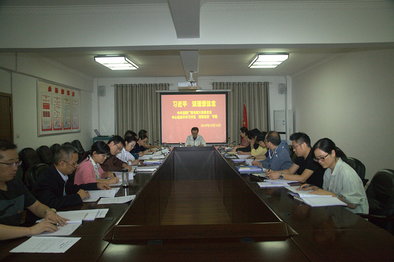 10月10日,涪陵电大党委理论学习中心组(扩大)召开第六次学习讨论会议,聚焦“理想信念”专题,集中学习习近平总书记关于理想信念的重要论述。党委书记、校长邹信同志领学,党委委员、纪委书记周鸿鹄同志主持会议,除个别领导干部因公外出,全体中层以上干部参加。