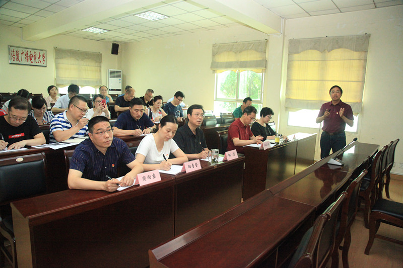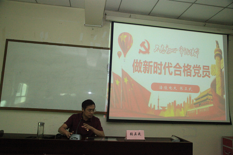 6月6日下午,端午节放假前,学校党委组织了一次党员领导干部讲党课,由校党委委员、副校长张正武同志以“不忘初心、牢记使命——做新时期合格党员”为题进行了宣讲。校党委委员 、纪委书记主持,全体党员参加了学习。