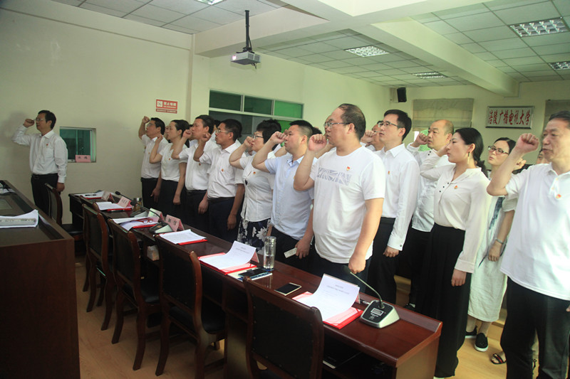 会议分为五个议程,一是奏唱《国歌》;二是重温入党誓词;三是表彰先进;四是党委书记、校长邹信同志代表党委作了讲话;五是奏唱《国际歌》。党员同志们在齐唱《国歌》和《国际歌》的时候,精神饱满、声音嘹亮,充分表现出电大党员同志们攻坚克难的锐气、创新图强的志气和团结统一的品质。