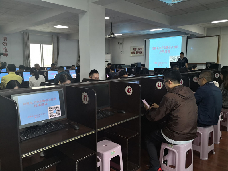 涪陵广播电视大学党委高度重视学校信息化建设和教职员工的信息技术能力提升培训工作,按照培训计划,2019年10月10日启动了2019年秋期的第一次培训。本次培训由信息技术中心组织,主要内容是培训教师熟练掌握运用企业微信及短信。戚娟副校长强调了新的短信平台使用的重要性,窦玉成老师运用直观清晰的案例式教学法进行了详细讲解,全校老师积极参与,认真学习,通过本次培训,提高了老师们对重庆电大新的短信平台的运用水平,有利于大家在今后的工作中更好地服务学生,规范管理。