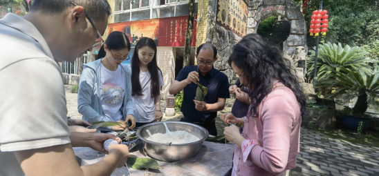活动中大家围在一起,折粽叶、填糯米、裹叶子、扎棉线,包粽子、打糍粑。在一片欢声笑语、其乐融融的气氛中,大家感受着浓浓的节日氛围。