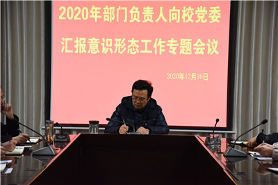 12月16日,我校召开了部门负责人向学校党委汇报意识形态工作专题会议。全校中层以上干部参加了本次会议。会议由党委委员、纪委书记周鸿鹄主持。