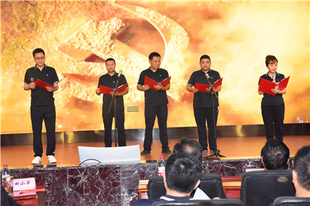 载歌载舞,共祝华诞。大会第四个议程文娱演出,精彩纷呈、气势如虹的诗词朗诵《沁园春.雪》,赤诚满怀的歌曲《不忘初心牢记使命》,热情洋溢的歌舞《大中国》,饱含深情的歌曲《唱支山歌给党听》,真挚炽热的歌曲《我爱你中国》,娓娓道来的诗词朗诵《大中国》,每一个节目都是对党对祖国的深情告白,表达了全体党员干部职工歌颂时代、永远跟党走,奋进新征程的美好期待。