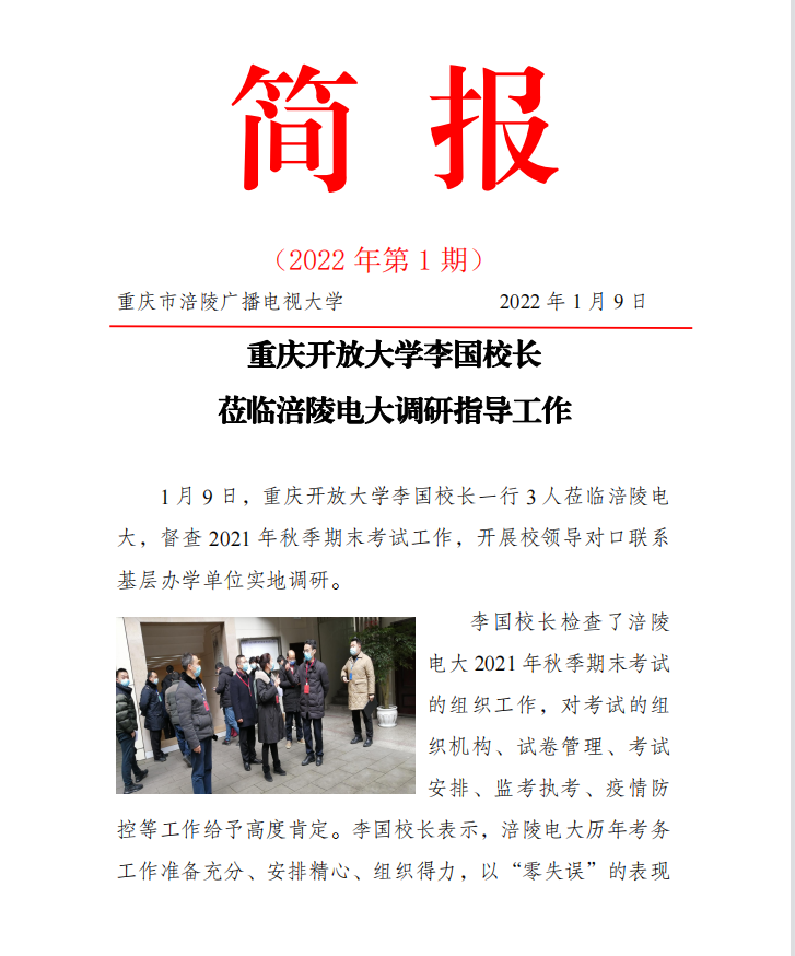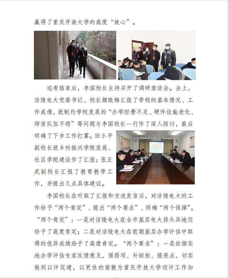 重庆开放大学李国校长莅临涪陵电大调研指导工作
