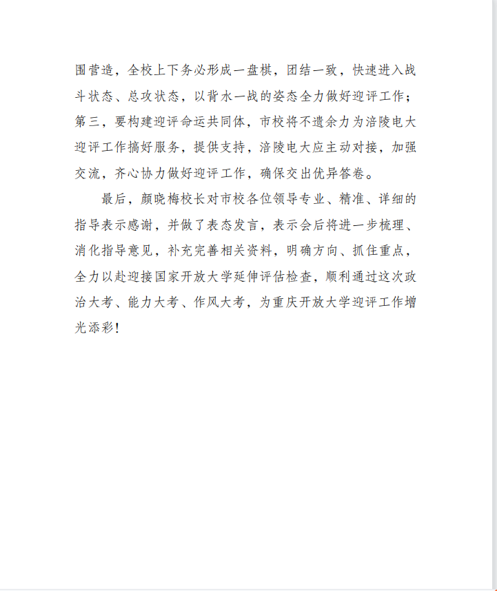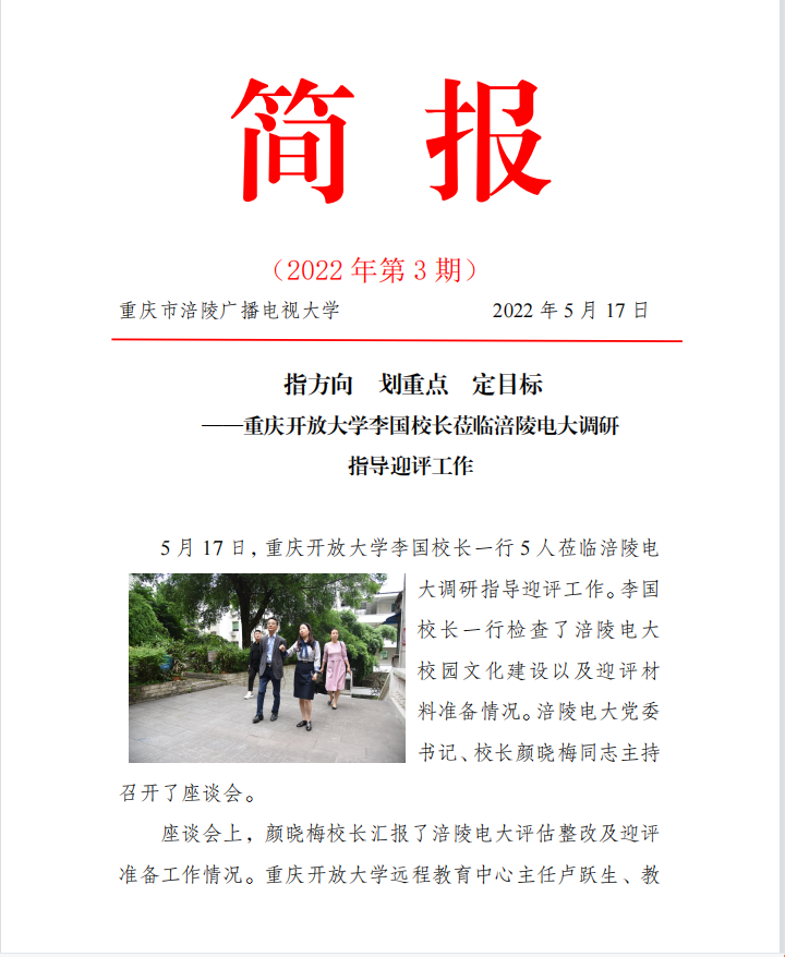 指方向 划重点 定目标——重庆开放大学李国校长莅临涪陵电大调研指导迎评工作