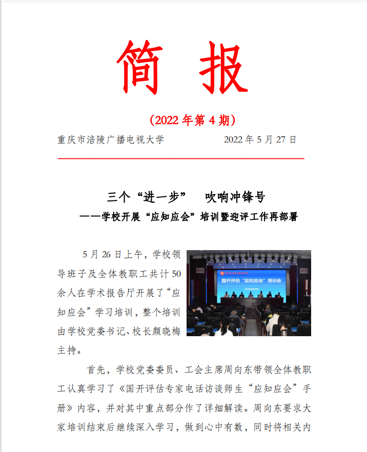 三个“进一步” 吹响冲锋号——学校开展“应知应会”培训暨迎评工作再部署