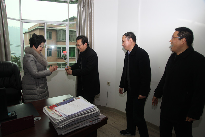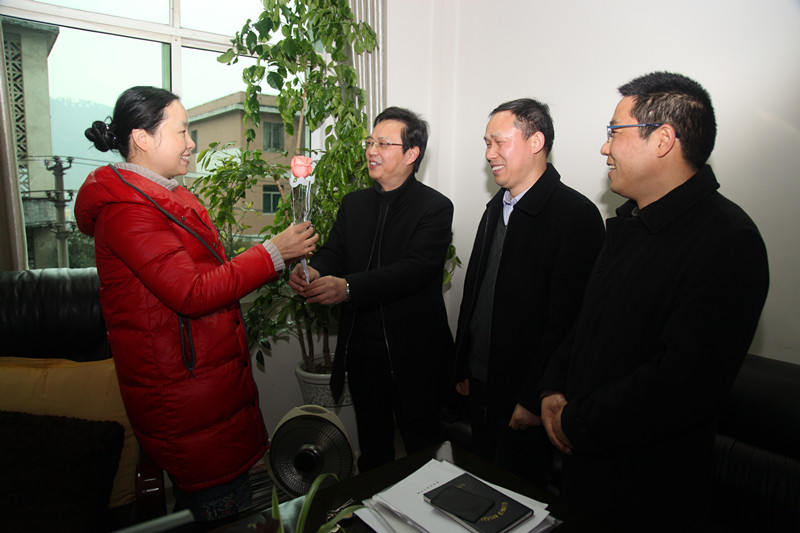 3月份是涪陵电大新学期开学、招生、考试等各项重点工作密集进行的日子,在“三八”妇女节这一天实际上全体教职员工包括妇女同志们都很忙。为了不影响工作,更为了让全校女职工过一个欢乐祥和的节日,校党委组织校工会及其女工委组织开展了别开生面的“三八”节慰问活动。一是利用教师微信群向全校女职工发节日慰问信、祝福语;二是赠送每位女职工一朵玫瑰花,深入每一个科室,将鲜花送到女职工手中,并向她们表示了节日的慰问和真诚的祝福;三是经学校党委研究同意,结合学校工作实际,将择时于3月中旬给女职工们调休,组织大家开展登山等文娱活动。